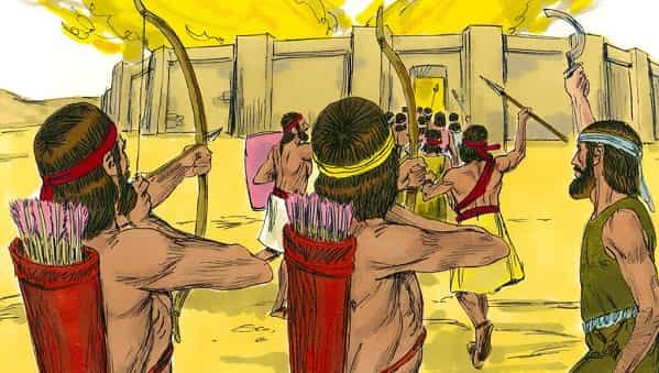 18 And the LORD said to Joshua, Stretch out the spear that is in your hand toward Ai; for I will give it into your hand. And Joshua stretched out the spear that he had in his hand toward the city. 19 And the ambush arose quickly out of their place, and they ran as soon as he had stretched out his hand: and they entered into the city, and took it, and hurried and set the city on fire. 20 And when the men of Ai looked behind them, they saw, and, behold, the smoke of the city ascended up to heaven, and they had no power to flee this way or that way: and the people that fled to the wilderness turned back on the pursuers. 21 And when Joshua and all Israel saw that the ambush had taken the city, and that the smoke of the city ascended, then they turned again, and slew the men of Ai. 22 And the other issued out of the city against them; so they were in the middle of Israel, some on this side, and some on that side: and they smote them, so that they let none of them remain or escape. 23 And the king of Ai they took alive, and brought him to Joshua.